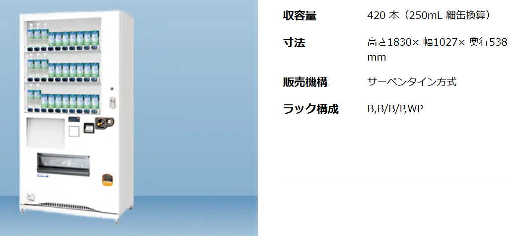 新台のメーカーは富士電機リティールおよびサンデン自動販売機がメインとなりますがご要望によっては各メーカー製品の取り寄せも可能です